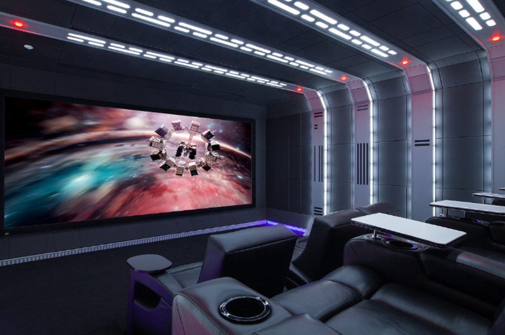 如果你是喜歡傳統風味的音響愛好者,鐘情于獨自一個人欣賞電影大畫面的樂趣,大多時候還想聽聽珍藏了許久了老唱片,那么可以將系統搭配的重點放在音響系統之中,選擇音樂感較為突出的前后級AV放大器與落地式的環繞聲音箱系統。如果你屬于視覺系的發燒友,喜歡150-200英寸的超大屏畫面所帶來的震撼,則可以將選擇的重點放在頂級的4KHDR10強力家庭影院投影機以及巨型透聲幕之中。如果你想還原杜比全景聲或DTS:X音效電影院中那份震動心弦的沉浸式聲音體驗,在挑選環繞聲音響系統的時候就需要特別根據視聽室環境大小,打造三維沉浸式環繞聲音響系統。當然,如果你沒有預算的壓力,家里視聽室的空間又足夠大,則是可以打造一個綜合性的定制家庭影院系統,既能有出眾的大畫面畫質效果,同時也擁有沉浸式的三維環繞聲音效表現,并且還加入了智能化的元素,可與家中整體的智能家居系統相融合,構成智能化的定制家庭影院系統。