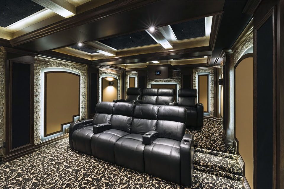 但由于這種格局一般設(shè)置在別墅什么的,因此往往空間較大,除了可以作為影音室外,還可以當(dāng)做藏酒室,再設(shè)置一處吧臺,閑時可一人品酒、觀影,也可以邀請合作伙伴、朋友,一邊聚會一邊看電影。如此愜意,才是富人生活。