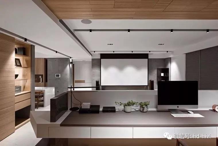 當(dāng)然,這種方式,也可以建立在開放式辦公區(qū)與客廳相結(jié)合,也就是說令客廳和辦公區(qū)融合,主人可以工作疲累后到客廳沙發(fā)上休息,也可以在辦公區(qū)域觀看到客廳的電視,對空間和時間的利用達到最高。