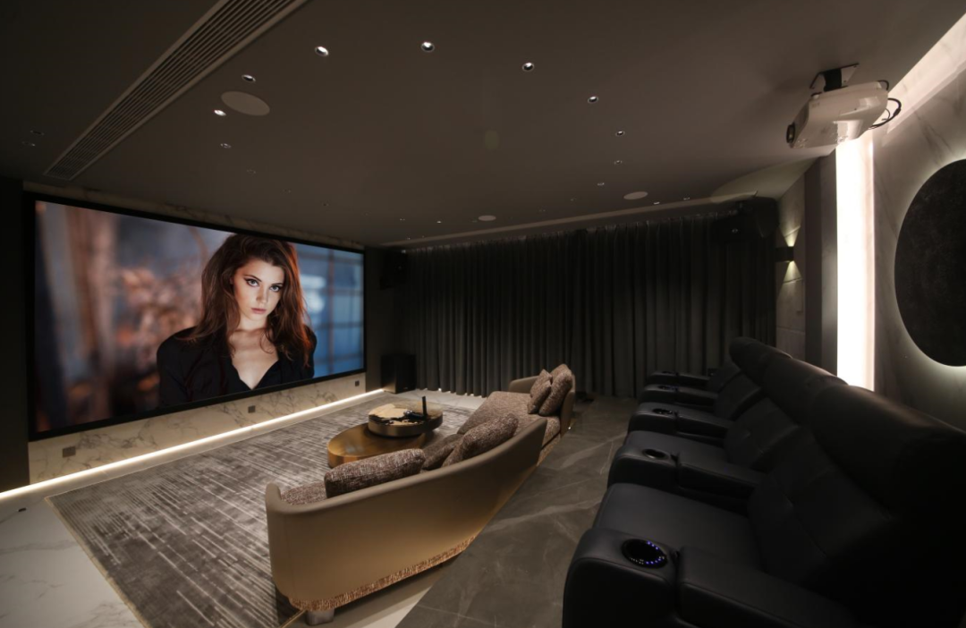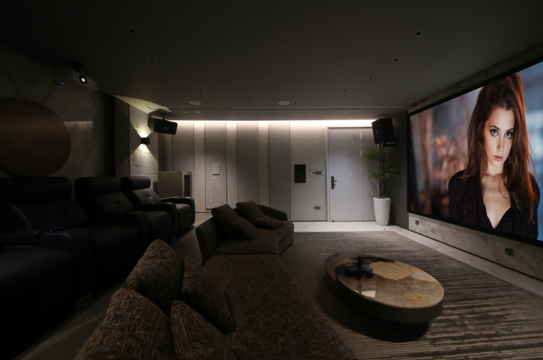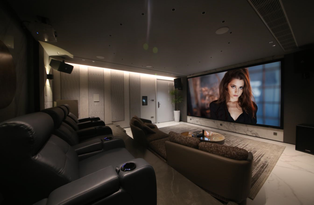 業主對影音器材的要求是“高端”,音質純真,這個影院案例使用的丹麥丹拿Dynaudio品牌,它是丹麥生產的世界 一流音響 、是Hi-Fi領域的佼佼者,知名度響應全球,對于玩音響的人,他說出的五個最愛的音響品牌,那么里面一定有丹麥丹拿。這個項目中使用到的丹麥丹拿定制安裝系列,融合了丹拿音箱技術,將浪漫情調和藝術傳統相結合。定制安裝型號設計巧妙,雍容典雅,低調而堅韌,符合業主尊貴儒雅的氣質,并且能完美的融入空間風格中,包容性極強。聲音表現方面,趨向硬朗,清晰,有力,適合聽人聲,弦樂,交響樂,無論是動感的音樂,還是震撼的電影,丹拿定制系列都能讓:業主盡享精確細膩的聲音表現,很合業主的品味,并且高還原度體驗震撼低音。系統中還使用SVS世界頂級低音炮,以烘托低頻熱烈的效果,業主在體驗過程中,感受排山倒海的低音效果,為之一顫。影音室的投影幕,在空間寬度范圍值內,取美國SWEIN 4K高增益透聲幕,丹麥丹拿聲音穿透180英寸大屏銀幕,保證了前方聲道的統一性聲音通透而真實,從而達到畫面和聲音的完美融合,最大限度地還原真實的聲音,達到聲畫合一的境界。再配合愛普生家用投影機,擁有3000流明高色彩亮度,100%色彩還原,無論白天黑夜,畫面表現清晰明亮。100000:1對比度,讓黑色更深邃,彩色更鮮艷,帶給業主不會有跳戲的自然感。