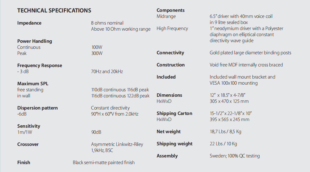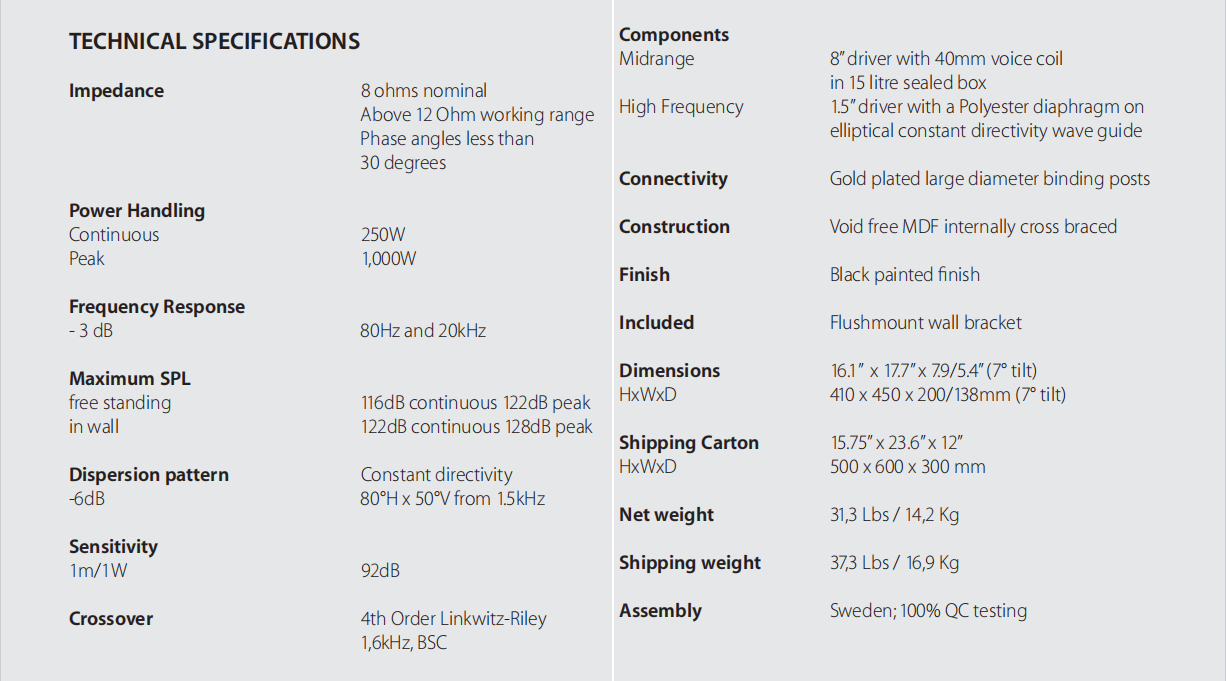 P8具備錄音室品質的1英寸壓縮式橢圓形導波管的高音單元,中低音單元為8英寸,當中使用的音圈為50毫米,搭配龐大的釹磁鐵磁路,即便在很高的聲壓下也不會產生任何的動態壓縮。