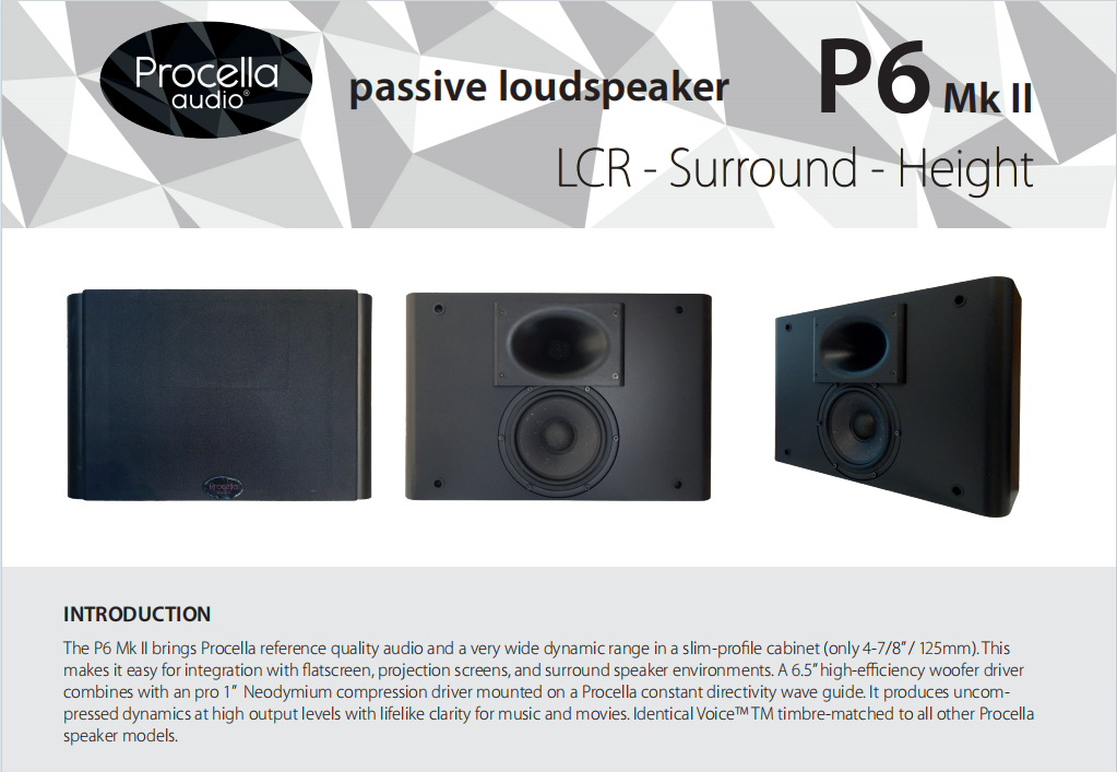 P6 MK II以超薄的箱體,為用戶帶來參考級的音質和寬廣動態范圍。P6 MK II可以掛墻也可以入墻安裝,能輕松與平板電視和投影幕整合到一起。P6 MK II配置1英寸壓縮式橢圓形導波管技術的高音單元和6.5英寸高效率中低音單元,P6在聆聽音樂或觀看電影時為你提供大音量下無壓縮的動態和逼真清晰的音像,P6 MK II以獨創Identical Voice?分頻技術能完美搭配P8\P610\P815及P860揚聲器。