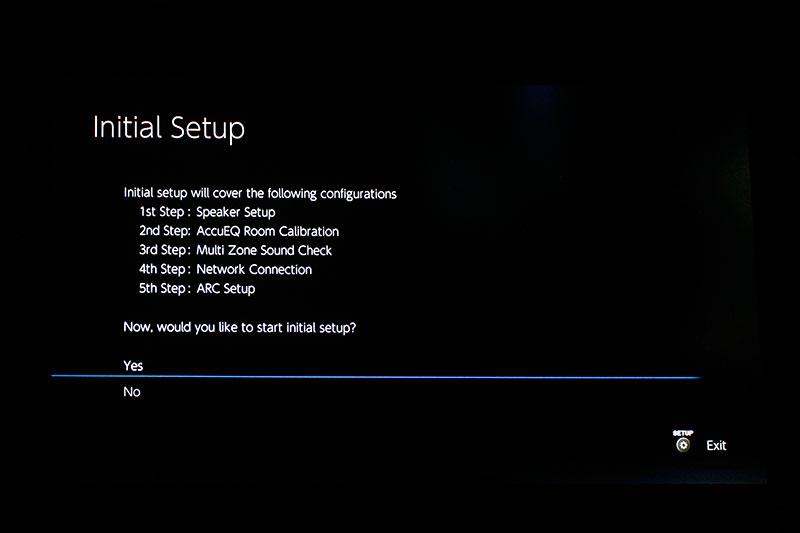 DRX-5.2能進(jìn)行自主調(diào)校,步驟包括音箱設(shè)置(距離、 聲壓、分頻點(diǎn)等)、AccuEQ房間聲學(xué)校準(zhǔn)、多區(qū)域聲音 檢查、網(wǎng)絡(luò)連接、ARC設(shè)置等